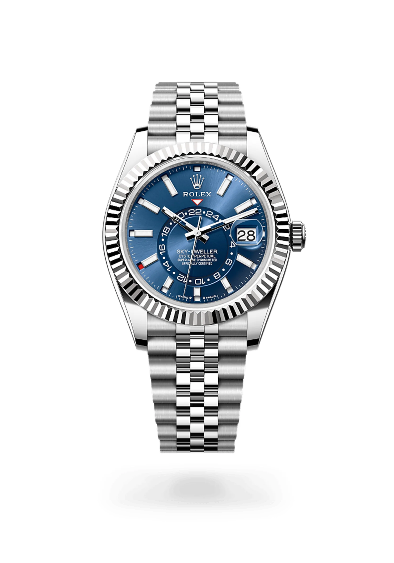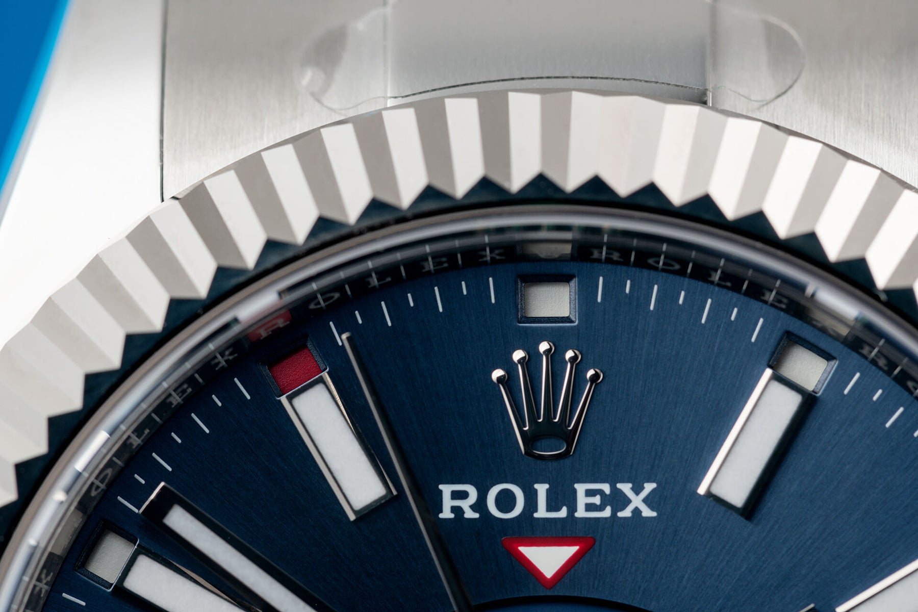 De plus, elles étaient identiques aux cannelures présentes sur le fond de boîtier, lui aussi vissé sur le boîtier pour la même raison, au moyen d’outils Rolex spécifiques. Avec le temps, les cannelures sont devenues un élément purement esthétique, la signature de Rolex. Aujourd'hui la lunette cannelée est une spécificité de la marque, exclusivement en or. La Sky‑Dweller dispose d’un mécanisme d’interaction entre la lunette tournante, la couronne de remontoir et le mouvement : le système Ring Command, qui permet au porteur de la montre de sélectionner tour à tour les fonctions et de les régler de manière simple, rapide et sécurisée.